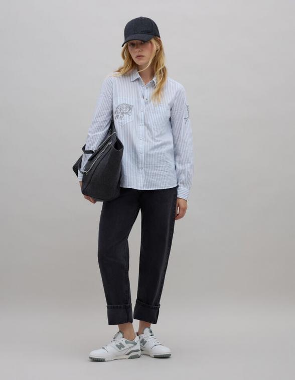 IKKS Chemise, blouse | Femme Chemise bleue rayée broderies métallisées Femme