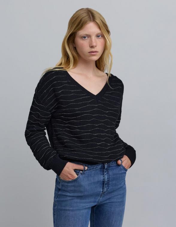 – Pull en tricot de coton, polyamide, laine et fibres métalliques coloris noir pour femme