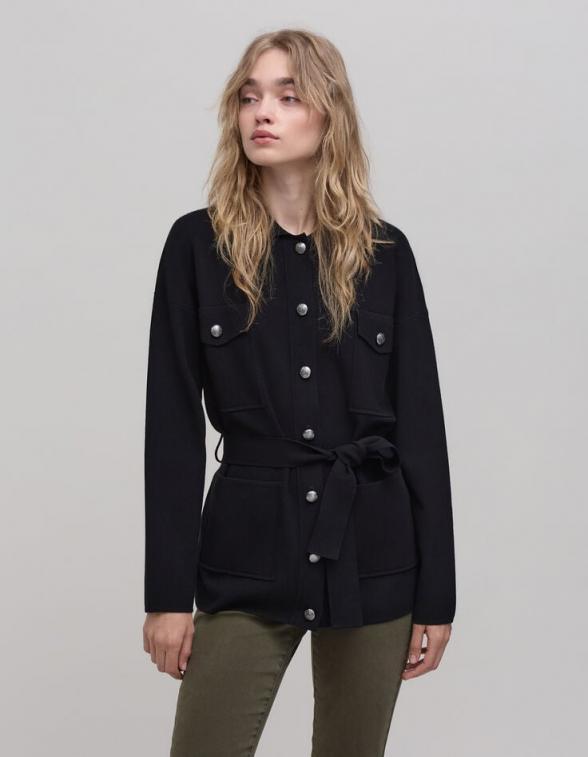 – Cardigan esprit saharienne en tricot de viscose et polyamide coloris noir pour femme